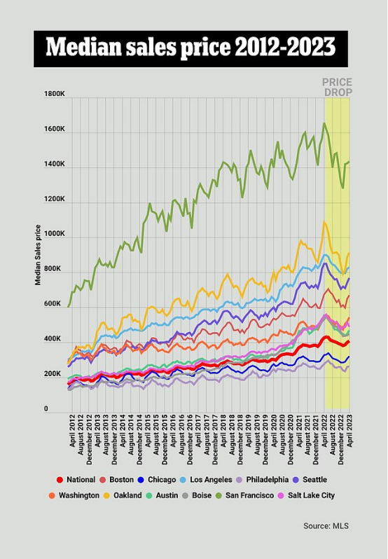 报告中还显示,全美范围内的房价中位数下跌了近18,000美元,为2012年1月以来的最大跌幅。 数据来源于dailymail.com。