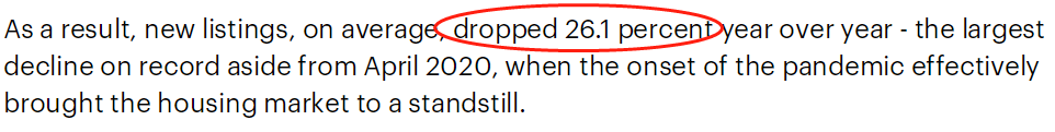 全国新房源平均同比下降了约26.1%,这是自2020年4月以来的最大降幅。 数据来源于dailymail.com。