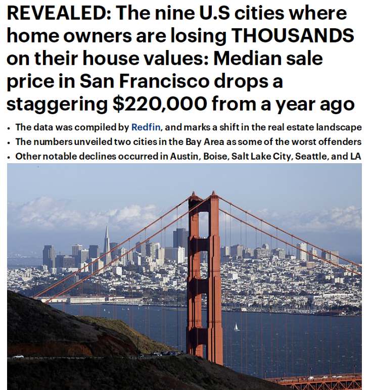 其中加州海湾地区的两个城市——奥克兰(Oakland)和旧金山(San Francisco)更是下跌了超6位数。