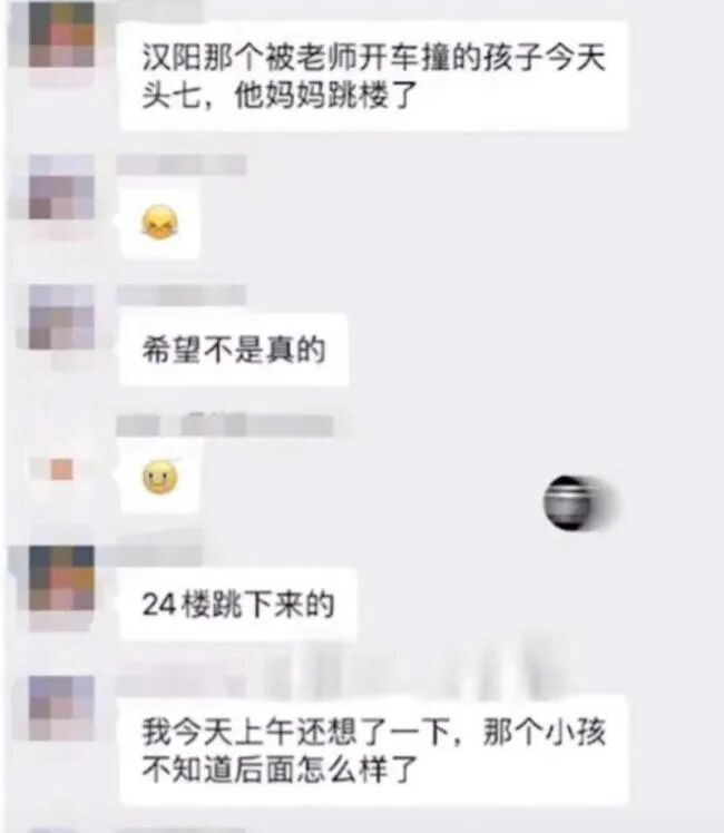 北京时间6月2日,多张微信群聊截图显示:“小学生校内被老师开车撞死”事件中的7岁男童母亲杨女士,在小区内坠楼身亡!