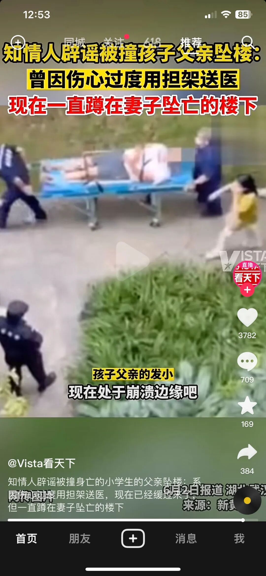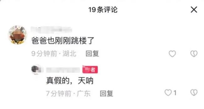 但很快,就有知情人站出来“辟谣”父亲坠楼的消息,说父亲是在发现妻子坠楼身亡后情绪极度崩溃,伤心过度产生了身体不适,急救人员赶来后用担架将他送上救护车,很快就缓了过来,一直蹲在妻子坠楼的地方,场面非常令人心碎。