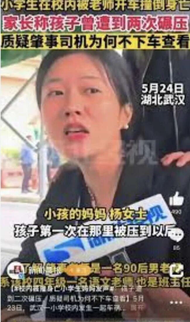 此前,汉阳区教育局及校方曾回应:事发课间,肇事司机是四年级班主任,已被警方带走。5月25日,武汉市汉阳区教育局就“小学生校内被老师驾车撞倒身亡”一事,发布情况通报,全文如下: