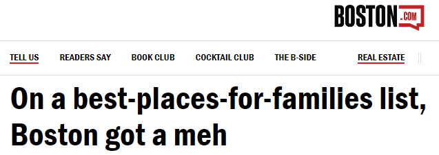 在WalletHub的最佳养家地点名单上,波士顿在182个城市中排名第84。满分为100分,波士顿获得了52.6分。