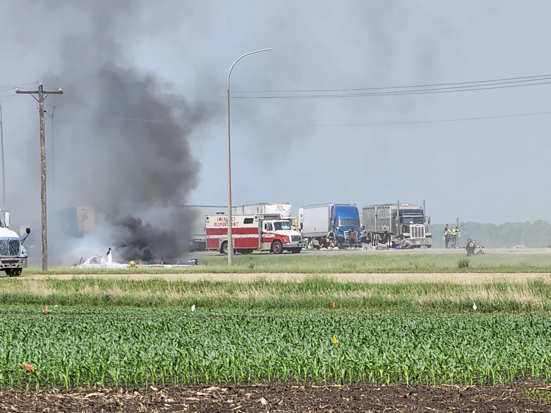 另一名目击者John Proven在周四中午刚过后,看到一个沟渠里有一辆起火的车,以及附近有一辆半挂卡车的前部被烧毁。