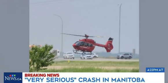 据CTV报道,这起车祸发生在Winnipeg以西两小时车程远的社区Carberry附近,在Hwy 1和Hwy 5路口。