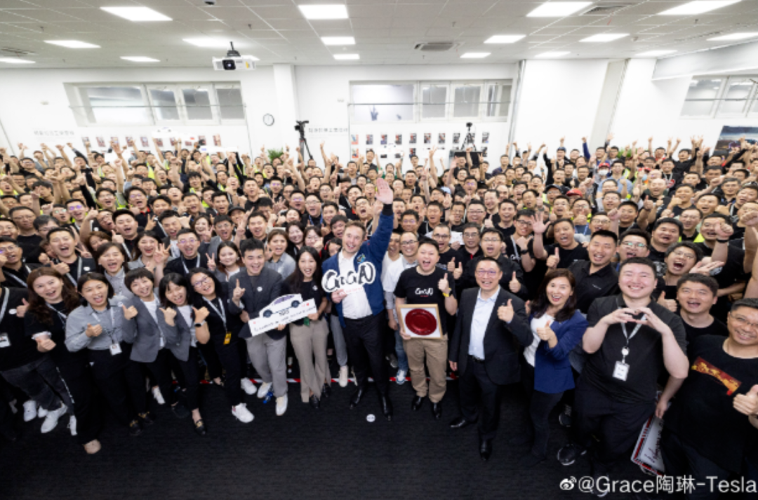 菜单封面相当讲究,两匹马占据大部分位置,上方为英文“TESLA”,下方则是汉字“一马当先”与英文“Extraordinary”。 菜式方面,晚宴共有16道菜,分为前菜、汤、海鲜、肉类、时蔬、主食、甜品7大类。 包括意大利黑醋松板肉、怀旧妈妈菜、马家沟芹菜樱花虾、美国象拔蚌(老坛酸菜)等,主食则是炸酱面。 6月1日凌晨,马斯克到访上海超级工厂。特斯拉全球副总裁陶琳微博发布两张马斯克和员工的大合影,配文“感谢所有的支持!收获满满的一天!”