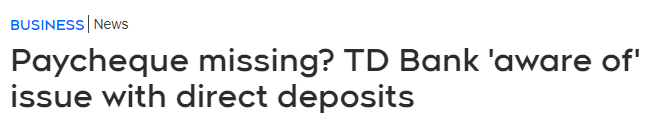 加拿大TD银行"存款故障"!大批华人收不到工资!账单付不起!