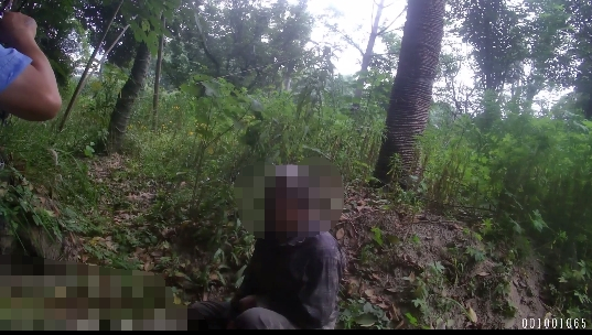 现场警力立即开展“地毯式”搜寻,一路“披荆斩棘”,不放过每个角落,终于在一处树丛中发现了虚弱的赵大伯。