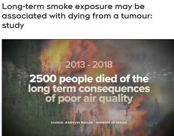 根据加拿大政府统计,2013年至2018年,全国已经有2500人死于空气质量差导致的长期环境因素。