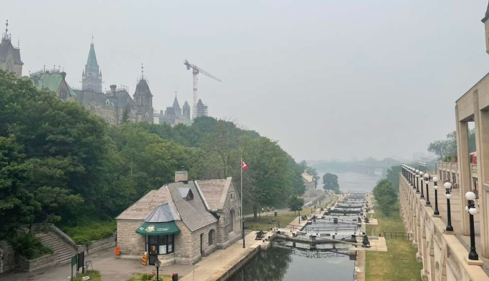 现在魁省北部的山火仍在燃烧。,东北风作用下,烟雾席卷扩散到整个南部区域。加拿大环境部门表示,蒙特利尔市内的空气质量属于“高度危险状态”,希望人们要尽量减少接触烟雾。