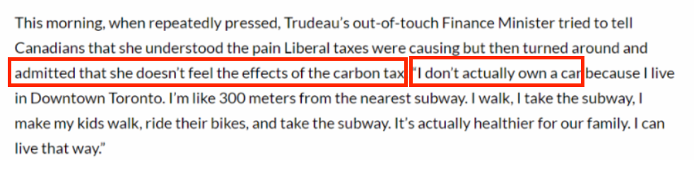 在采访中,方慧兰也承认联邦政府的能源政策也对偏远地区造成了严重的打击:"但我是在阿尔伯塔省北部的一个小镇上长大的,而且我16岁就拿到了驾照......我明白,在爱德华王子岛和整个加拿大大西洋地区,人们需要开车。"