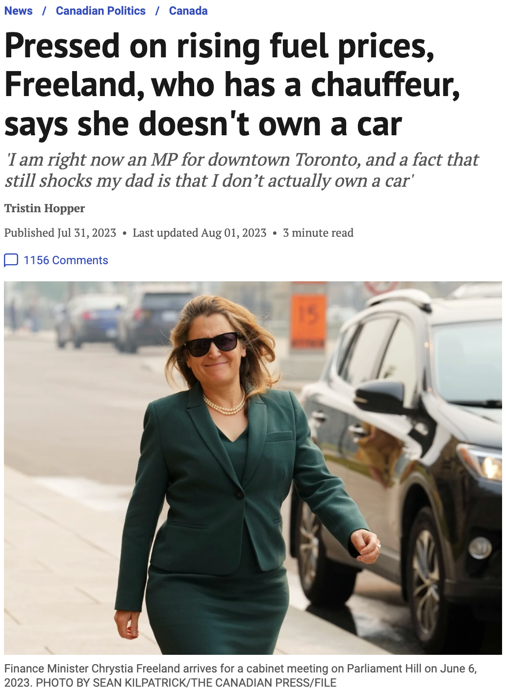有意思的是,本月初,超级生活刚报道过,方慧兰在接受有关加拿大大西洋地区燃料价格上涨和经济承受能力的提问时,她表示自己住在多伦多市中心,“没有汽车也不需要汽车”。
