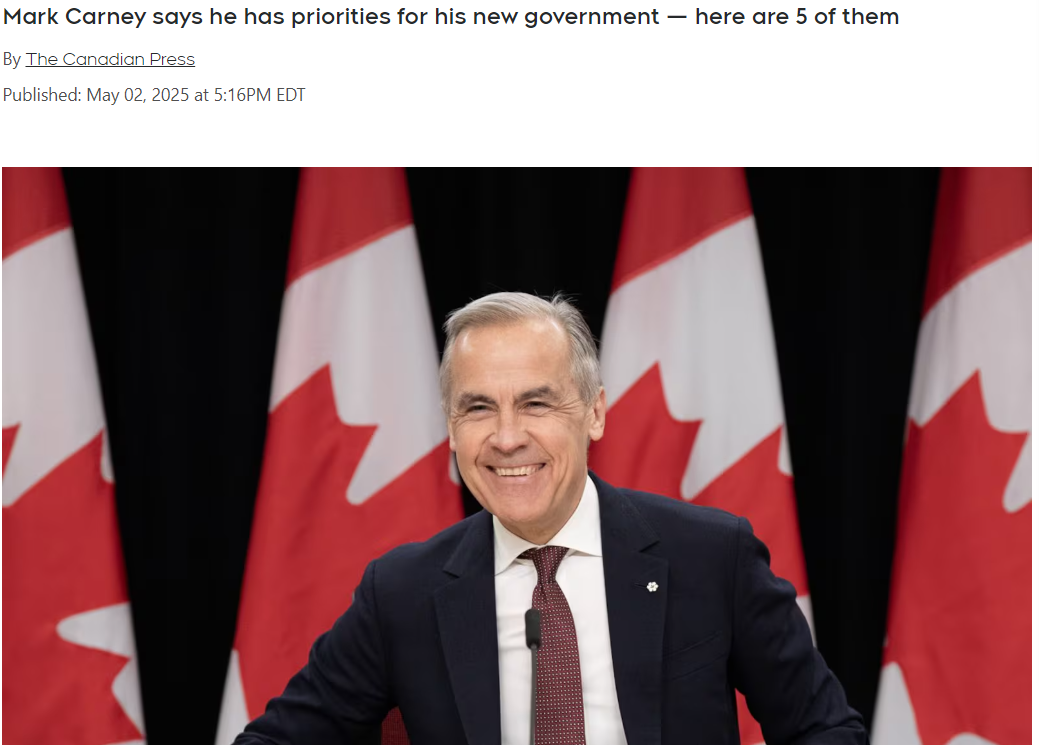周五,在选举后的首次新闻发布会上,加拿大总理Mark Carney列出了他的一些优先事项。
