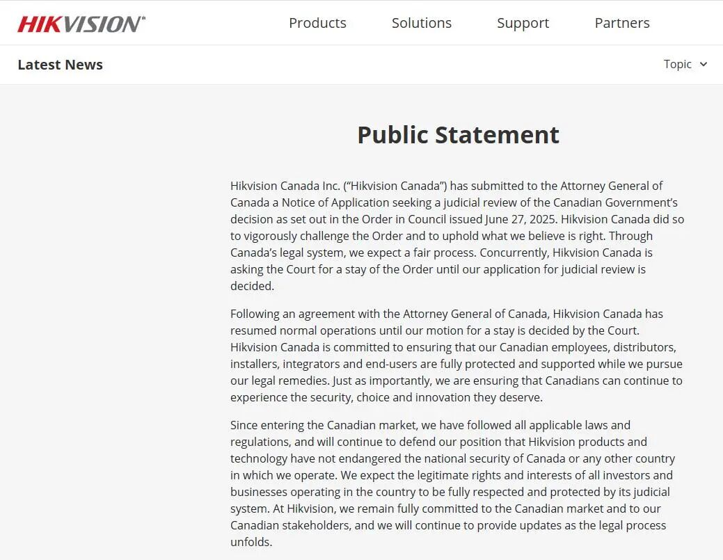 海康威视:加拿大公司暂已恢复运营!此前曾遭“封杀”