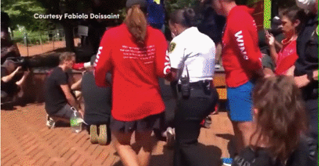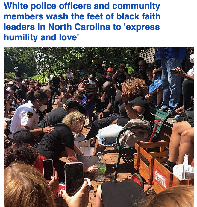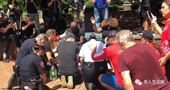很多人痛哭起来,跪在地上的白人抗议者和警官开始动手为黑人夫妇洗脚…