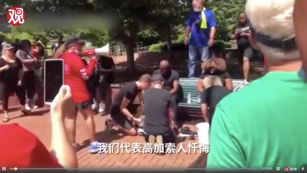 可眼前的画面....白人警察,黑人,下跪,洗脚....