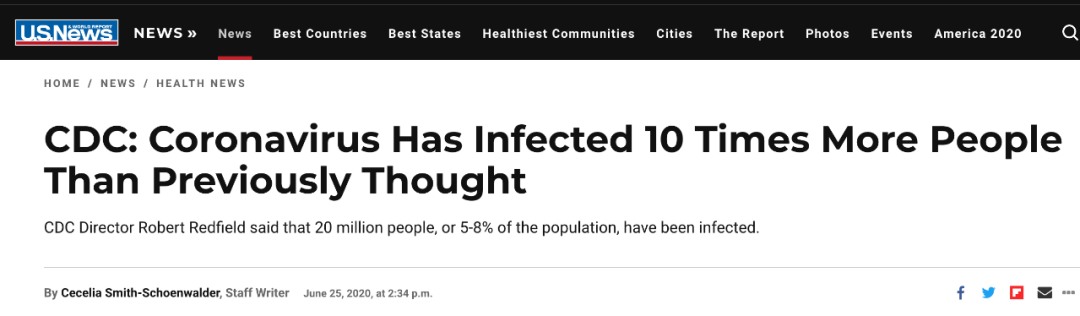 全美感染新冠病毒人数被低估,迄今约有2000多万人受感染!相当于全国230万名确诊呈报病例的10倍,约占全国3.31亿人口的6%!
