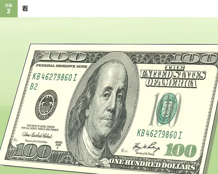 1.仔细观察印刷质量。假的美钞手感平滑,缺乏层次。由于美元真钞的印制方法属于机密,极难造假,因此造假者也只能生硬拼凑。