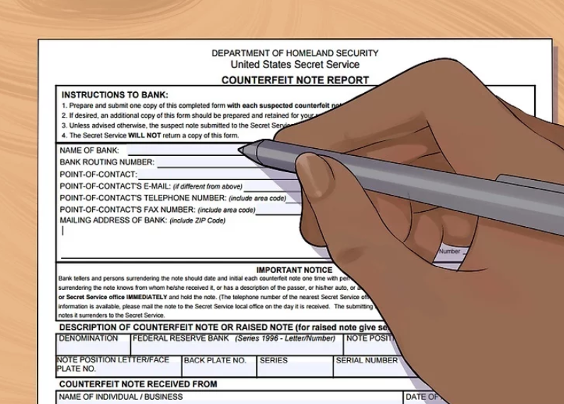 7.将钞票交给有关部门。钞票或硬币只能交给相关警员或美国特勤局的特工。在接受询问时,要尽可能清楚地描述伪钞使用者及其同伙,同时提供在收到假钞时任何其他细节。