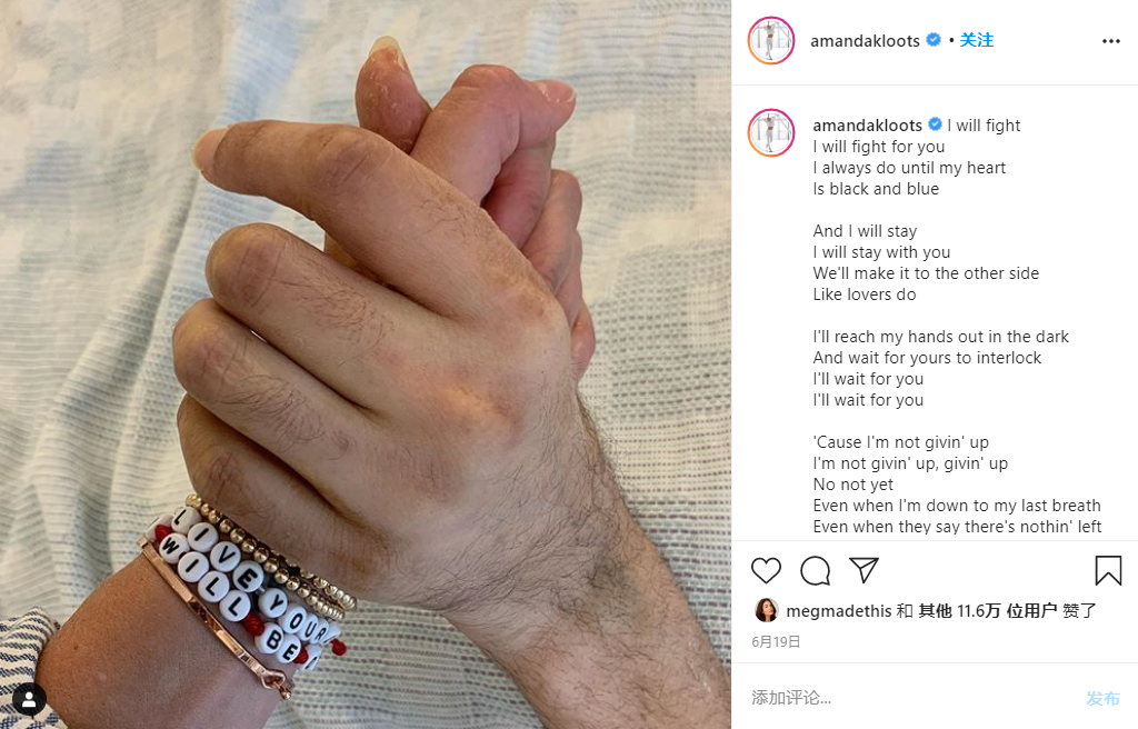 此前,她一直在社交媒体上更新丈夫的病情,牵动着不少人的心。