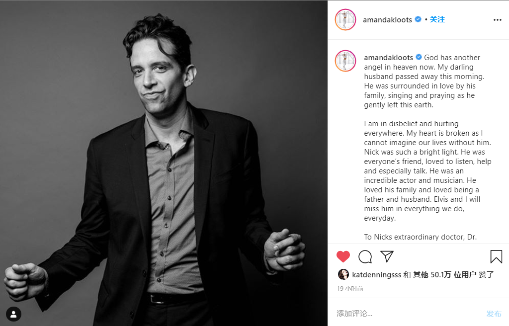 这则令人悲伤的消息由科尔德罗的妻子阿曼达·克鲁茨(Amanda Kloots)于5号时发布在了社交媒体上。