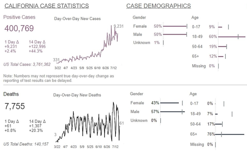 然而,截止到目前,加州累计确诊病例已突破40万大关,达到409305例,已经超过纽约州的408181例,正在变成下一个美国“最大疫区”。