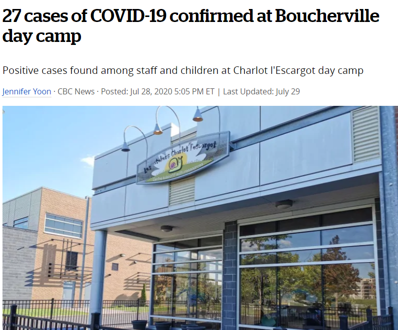 上周,加拿大魁省一个夏令营日营Charlot l Escargot爆发疫情,有多达27名儿童和工作人员的病毒测试呈阳性。