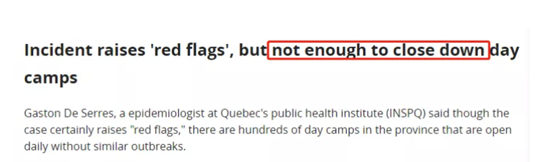 不过,魁省公共卫生研究所的流行病专家Gaston Serres认为,虽然这个案例是一个“危险信号”,但该省有数百个夏令营,这些营地每天都在开放,并没有类似的爆发。
