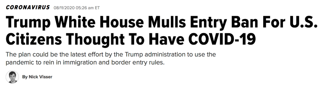 根据特朗普的这份提案,若是美国人在别的国家感染新冠病毒则无法入境美国。