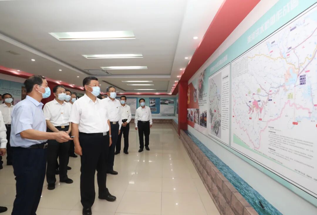 习近平总书记18日赴安徽考察调研。当天下午,他先后来到阜阳市阜南县王家坝闸、红亮箱包有限公司、蒙洼蓄洪区曹集镇利民村西田坡庄台,察看淮河水情,走进田间地头,了解当地防汛救灾和灾后恢复生产等情况,看望慰问受灾群众。