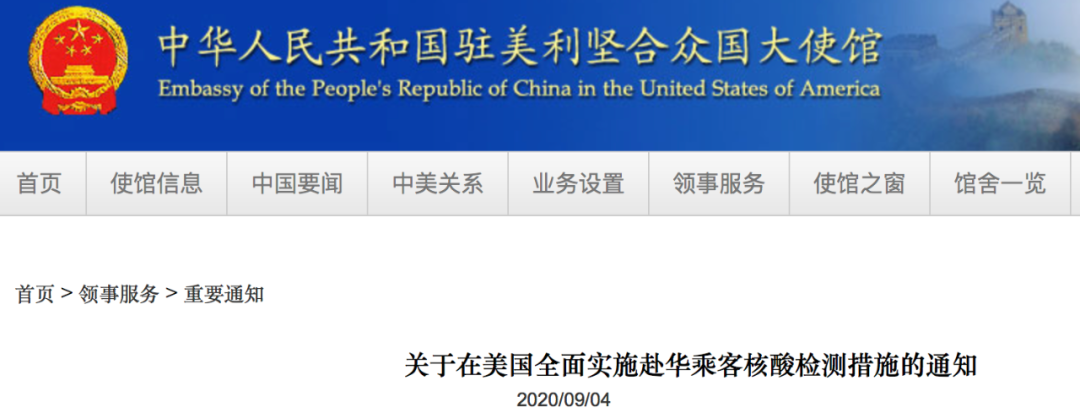 就在今天,驻美国使领馆发布公告称,决定于美东时间9月15日0时起在美国全面实施赴华乘客核酸检测措施。