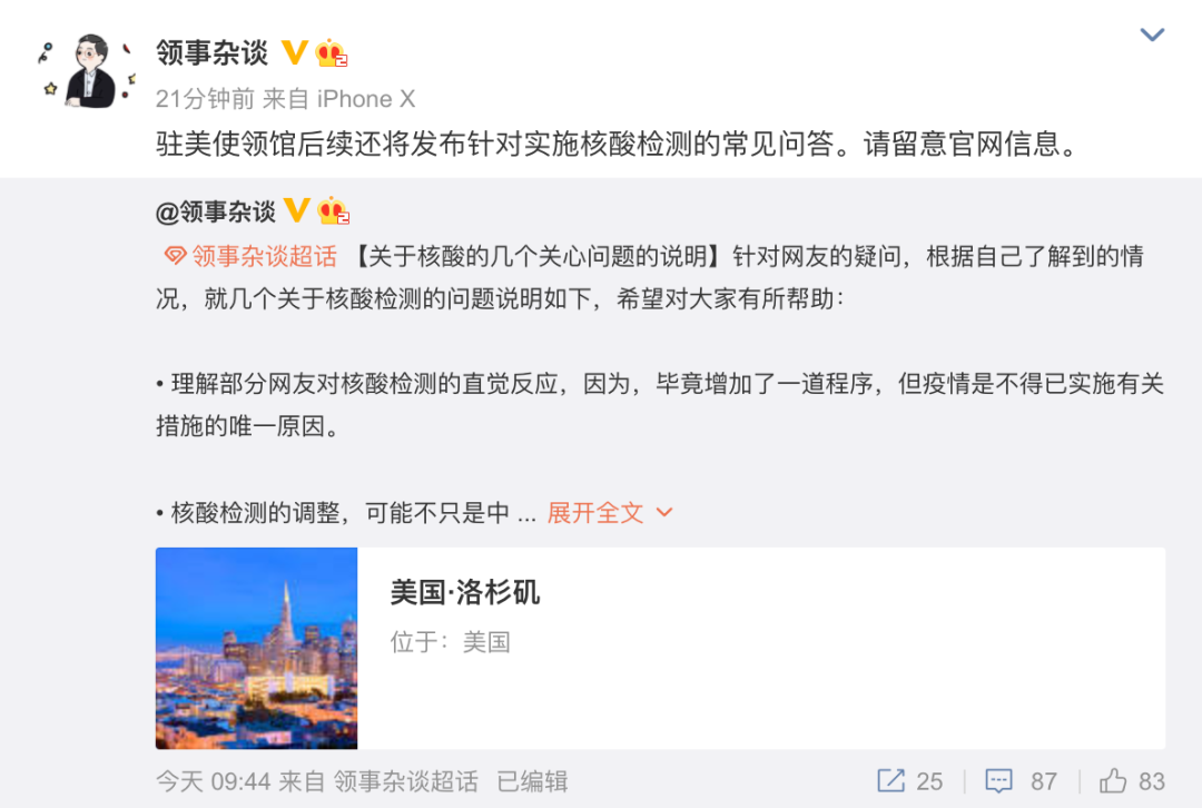 除此之外,@领事杂谈根据自己了解到的情况,就几个关于核酸检测的问题说明如下,希望对大家有所帮助:
