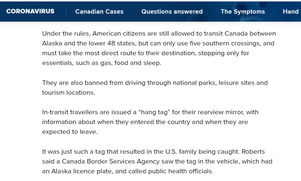 在今年8月底,加拿大进一步加强了对通过该国前往阿拉斯加的美国人的管理措施。例如,美国公民可以通过加拿大在阿拉斯加和美国其他州之间旅行,但他们必须使用加拿大政府指定的路线,并且必须使用最短的行程。如果您在途中停下来,则只能购买必需品或休息一下,也不能穿越任何国家公园和休闲旅游胜地。此外,这些美国人的车窗上还会贴有标签,上面会标明他们何时进入加拿大以及何时需要离开。