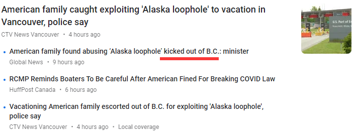 如天由四人组成的美国家庭在加拿大引起了公众的愤慨,这是加拿大人民和当局最近发现的一个典型案例。根据CTV新闻和许多其他加拿大媒体的报道,在8月25日美国大家庭从阿拉斯加入加拿大后,他们谎称他们很快就会通过加拿大到达华盛顿州。