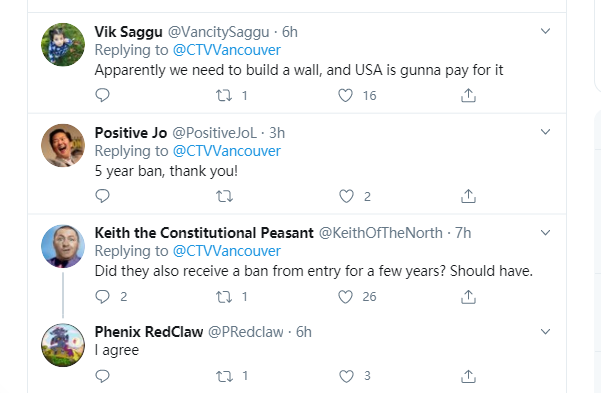 不少加拿大网民还认为应该进一步提升对这些美国人的惩罚措施,比如提高罚款金额,拉入禁止入境的黑名单,乃至关入监狱等等。有人还干脆建议在美加边境“建墙”,以阻拦这些来自美国这个全世界疫情最严重国家的不法分子入境。
