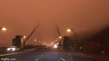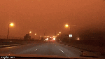 但更神奇的是,周三一早,加州的居民醒来发现,变天了,“橘红色的天空,没有一丝光亮,像火星,像末日,就是不像人间”