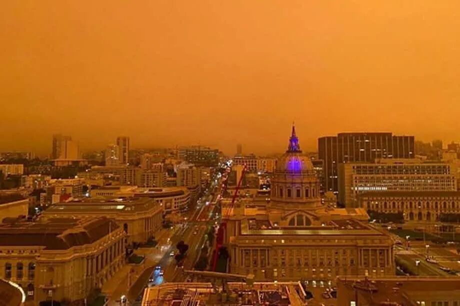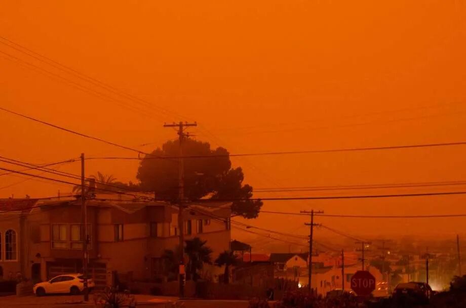 9月9日周三加州居民发现外面的世界变得非常陌生,整个天空朦胧地散发出南瓜橙的颜色,这像是火星上看到的。