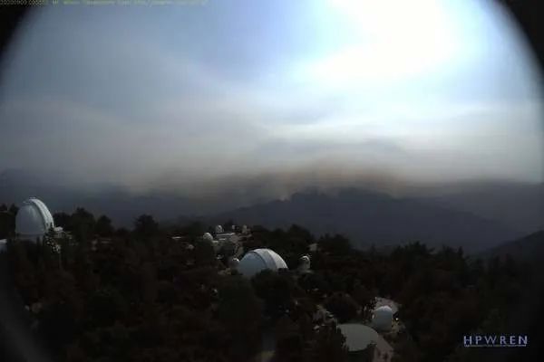 图:今天(9日)早上的威尔逊山天文台。(来自高性能无线研究和教育网络,HPWREN)