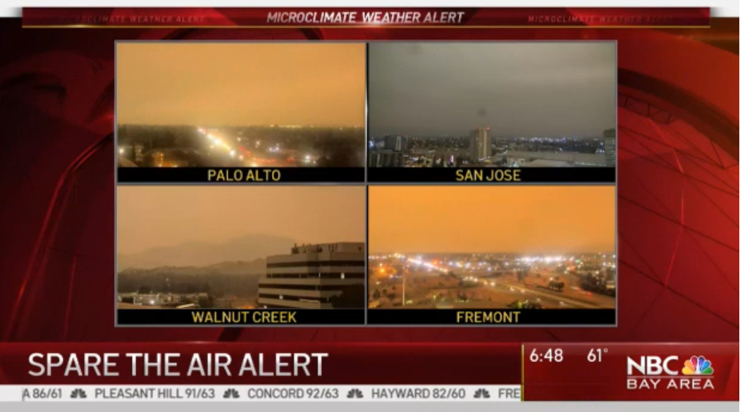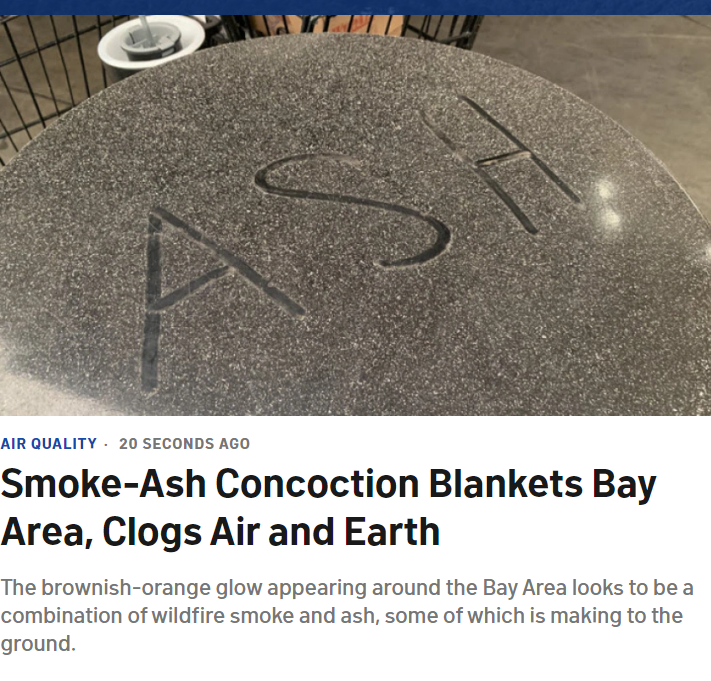 旧金山湾区深陷橙黄色迷雾,无论是东湾还是南湾,无论是高速还是住宅地,没有一座城市清晰可见。