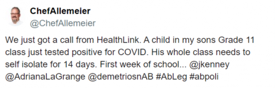 另一方面,开学一周的阿省同样不乐观。卡尔加里已有多所学校报告出现确诊案例。