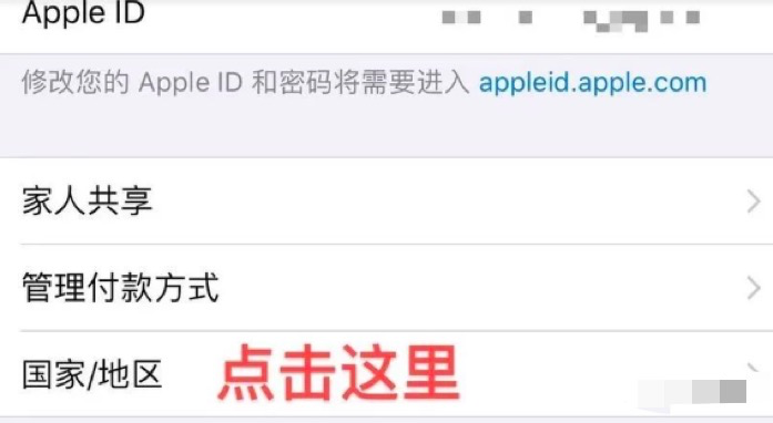 4. 点击View Apple ID (中文叫:查看 Apple ID) 5. 点击Country/Region (国家/地区) >>在下拉菜单中找到中国大陆 ,点击选择
