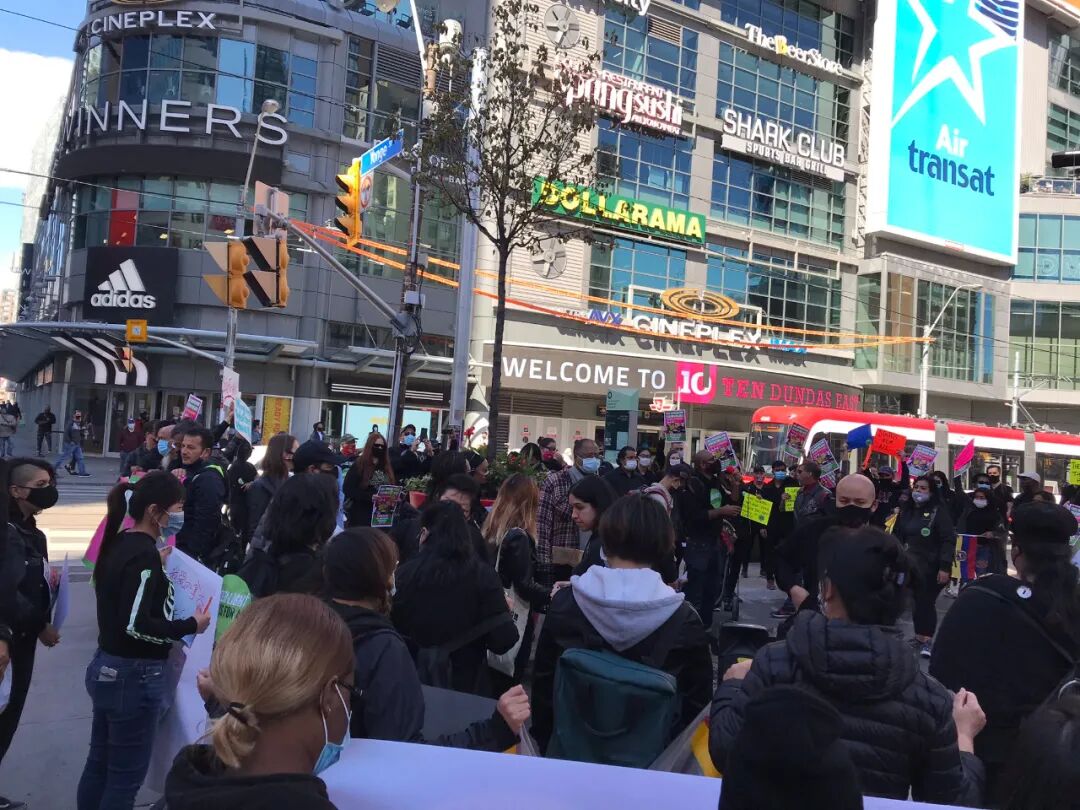 加拿大多个城市爆发游行!Eaton门口挤爆!华人拉起中文横...