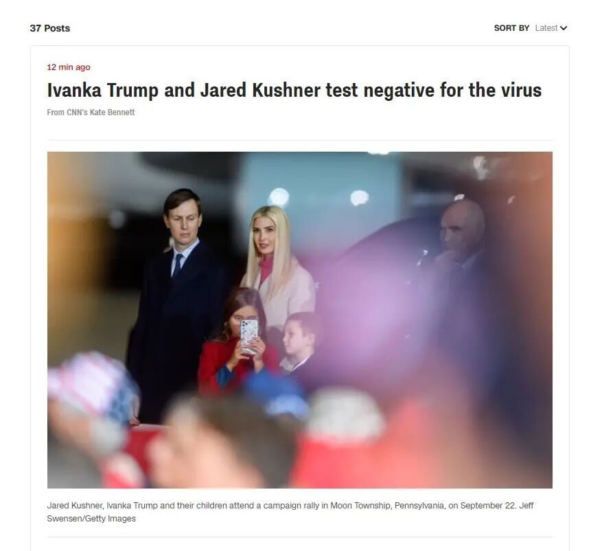 CNN报导,川普的医师康利(Sean Conley)在交给媒体的备忘录里提到,他是在当地时间1日傍晚接获川普筛检呈阳性的报告。