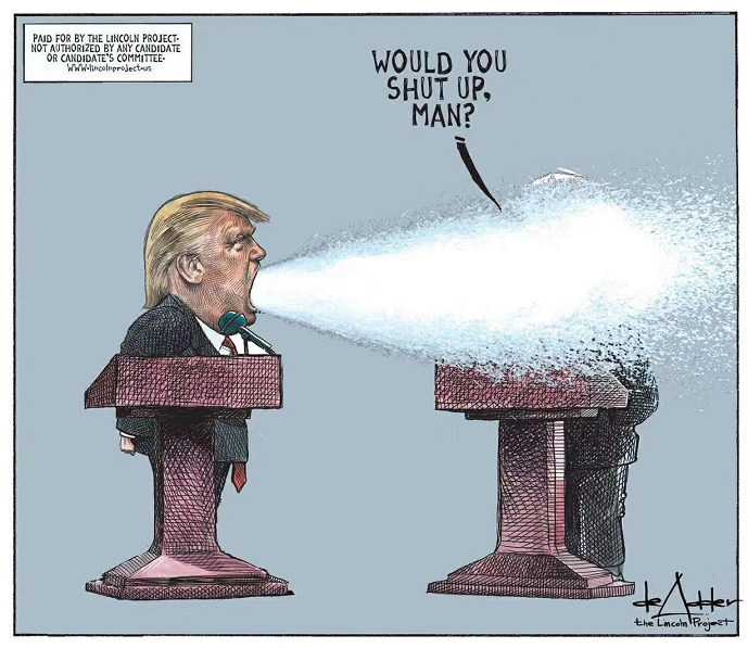前天举行第一场总统大选辩论会,候选人拜登与川普在密闭空间唇枪舌战,飞沫甚至可能喷4公尺远,且川普几乎都面向拜登,遭感染风险极高。
