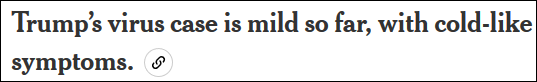 特朗普目前症状轻微类似感冒症状