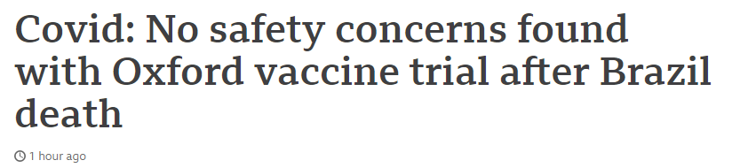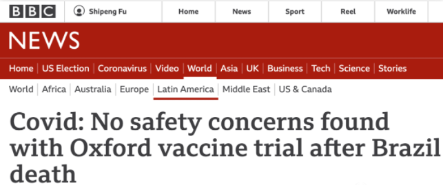 据后续报道,这名参与牛津疫苗试验而死亡的巴西志愿者,并没有接种牛津疫苗。