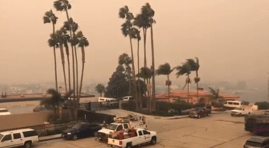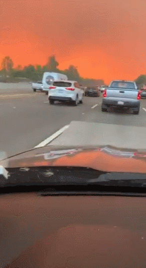 尔湾突发大火6万人紧急疏散 红日宛如"末日"! 大风袭击12万人或轮流断电 4辆卡车被吹翻...