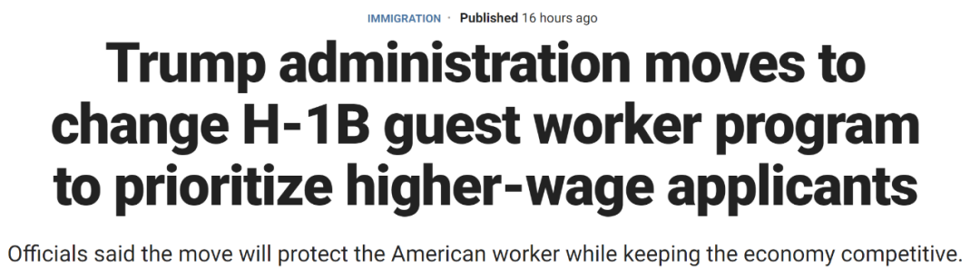 重磅! 刚刚,川普政府宣布:H1B签证重大改革计划!明年开...