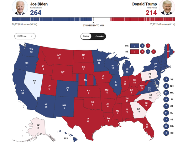 只差6票 拜登或成美国总统!川普团队多州上诉 称选票存...