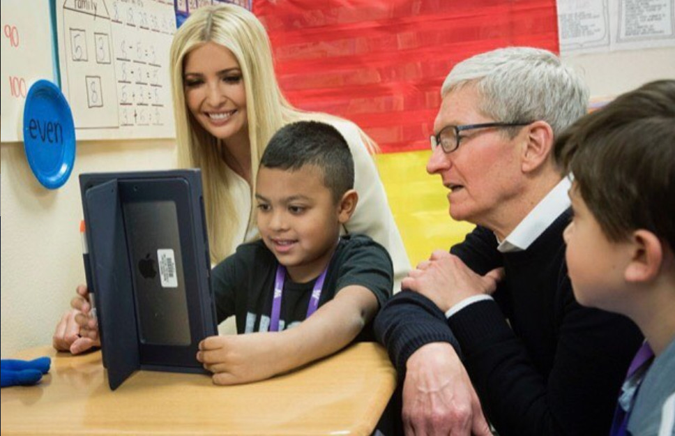 和苹果CEO库克一起参加有关儿童资助的活动,看得出来她是真的很喜欢小朋友们。